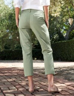 Kinsale is our contemporary take on the classic sailor pant. A comfortable, slightly stretchy, high-rise waistband (with no front pockets) creates a smooth silhouette while Kinsale’s cropped ankle and raw edge hem add a contemporary edge.
