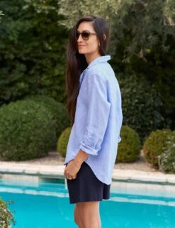 Consider Mary your four-seasons favorite. Ridiculously flattering thanks to a loose silhouette and just-above-the-knee hemline, this classic shirtdress moonlights as a breezy cover-up and works overtime on the weekend paired with pants.