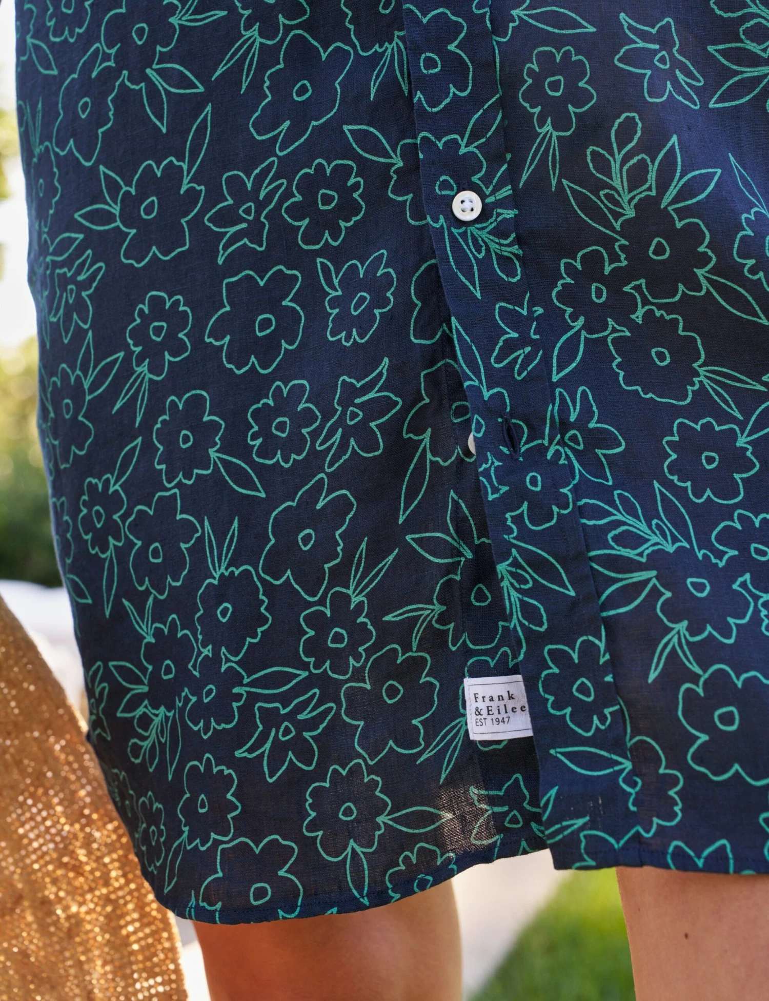 MARY Navy With Green Floral, Classic Linen