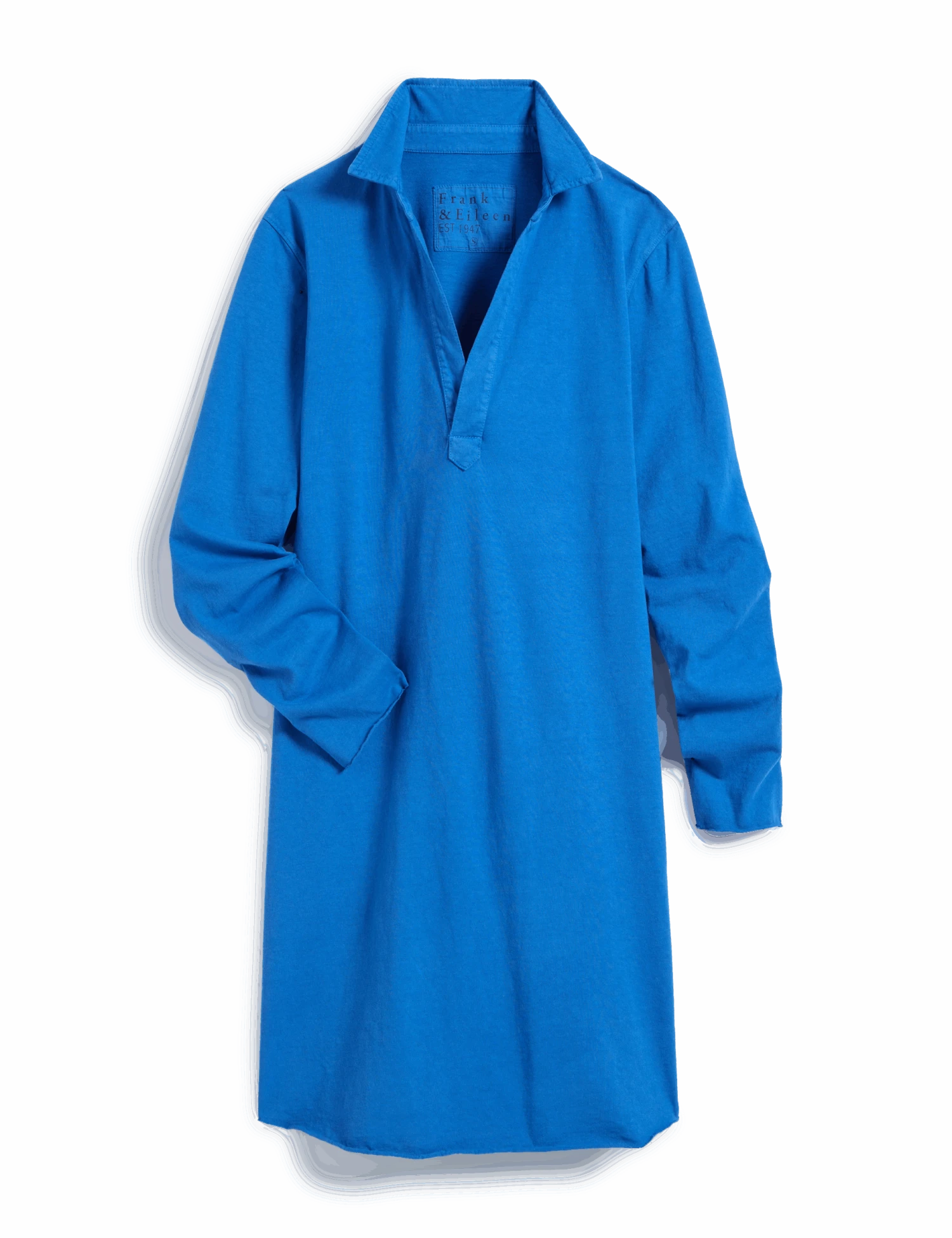Meet our preppy Popover Henley in dress form! With a slight drop sleeve, sporty v-neck, and straight raw-cut hem that hits just above the knee, this piece will take you from the tennis court to lunch…and back again.