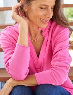 Our runaway hit Popover Henley has a slight drop sleeve, sporty v-neck, and straight raw-cut hem that looks cropped without sacrificing any length or coverage. This piece takes you from running laps to lunch, from beach walks to brunch…